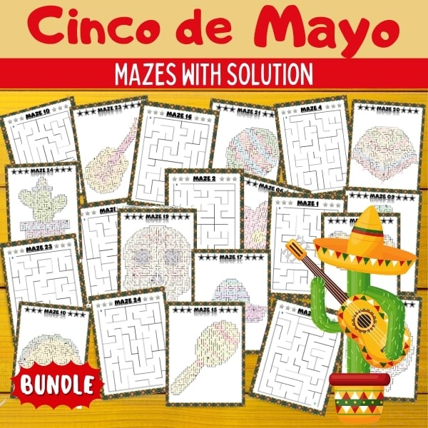 Cinco de mayo Mazes Puzzles With Solution - Fun May Brain Games Activities