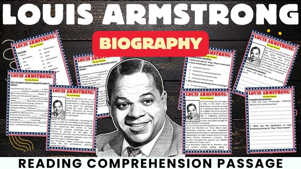 Embark on a captivating musical journey with our "Louis Armstrong Biography Reading Comprehension Passage Activities Printable." This comprehensive resource explores the extraordinary life of Louis Armstrong, the iconic jazz pioneer, trumpeter, and vocalist.