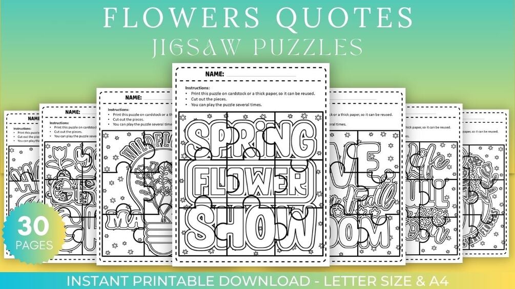 Spring Flower Quotes Jigsaw Puzzle Template Puzzles is an engaging and creative activity pack designed for young learners. This unique resource combines the fun of jigsaw puzzles with the creativity of coloring pages. Children will delight in solving the jigsaw puzzles to reveal adorable images of Gratitude Lettering setting. After completing the puzzles, they can express their artistic skills by coloring the pictures in vibrant hues.
