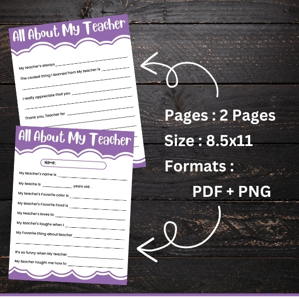 Discover the joy of celebrating Teacher Appreciation with our "All About My Teacher " printable questionnaire! Designed for Teacher Appreciation or Teacher's birthday card , this activity is a delightful way for children to express their love and appreciation for their Teachers .