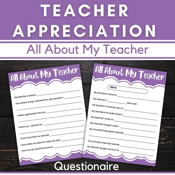 Teacher Appreciation Questionaire | All About My teacher Survey