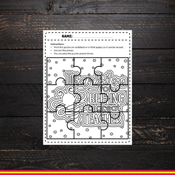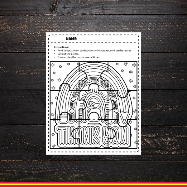 Fun Teacher Appreciation Week Jigsaw Puzzle Template Puzzles is an engaging and creative activity pack designed for young learners. This unique resource combines the fun of jigsaw puzzles with the creativity of coloring pages. Children will delight in solving the jigsaw puzzles to reveal adorable images of Gratitude Lettering setting. After completing the puzzles, they can express their artistic skills by coloring the pictures in vibrant hues.