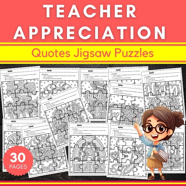 Teacher Appreciation Week Quotes Jigsaw Puzzle Template - Fun Games Activities