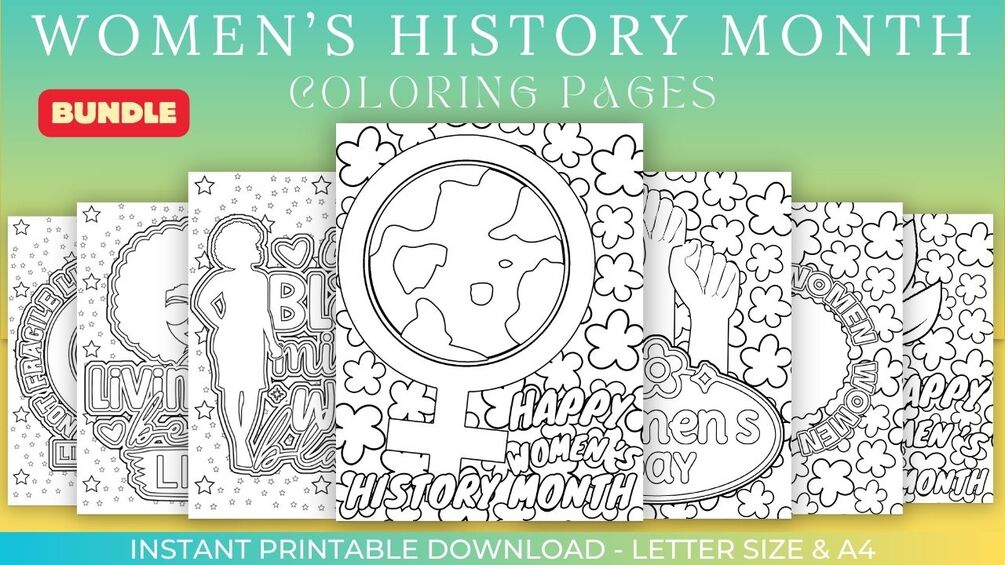 Women's history month Coloring Pages Sheets - Fun Womens Day Activities